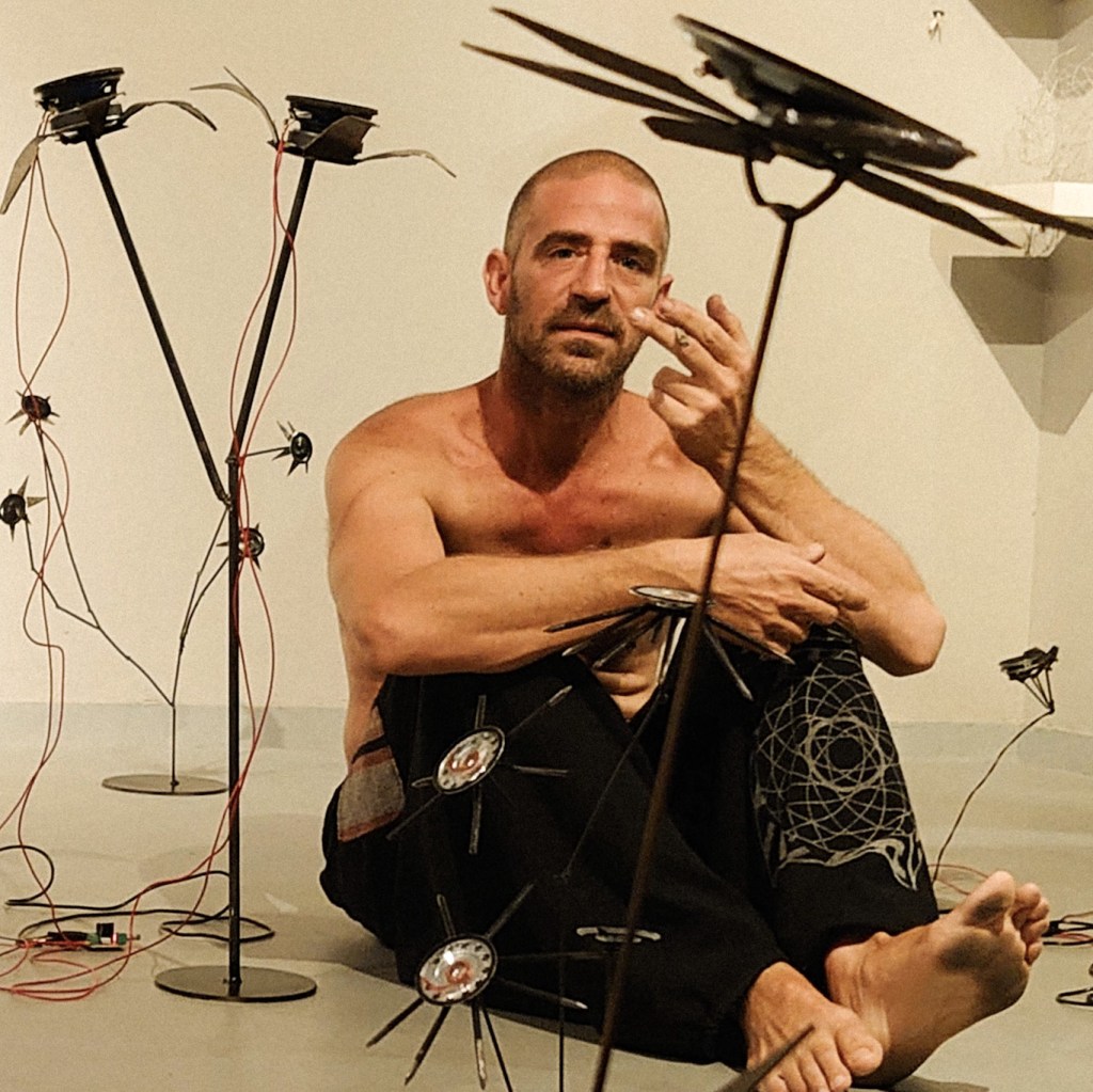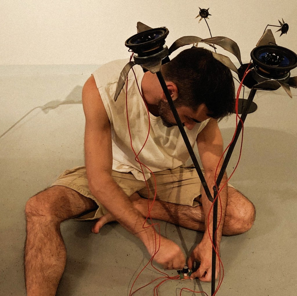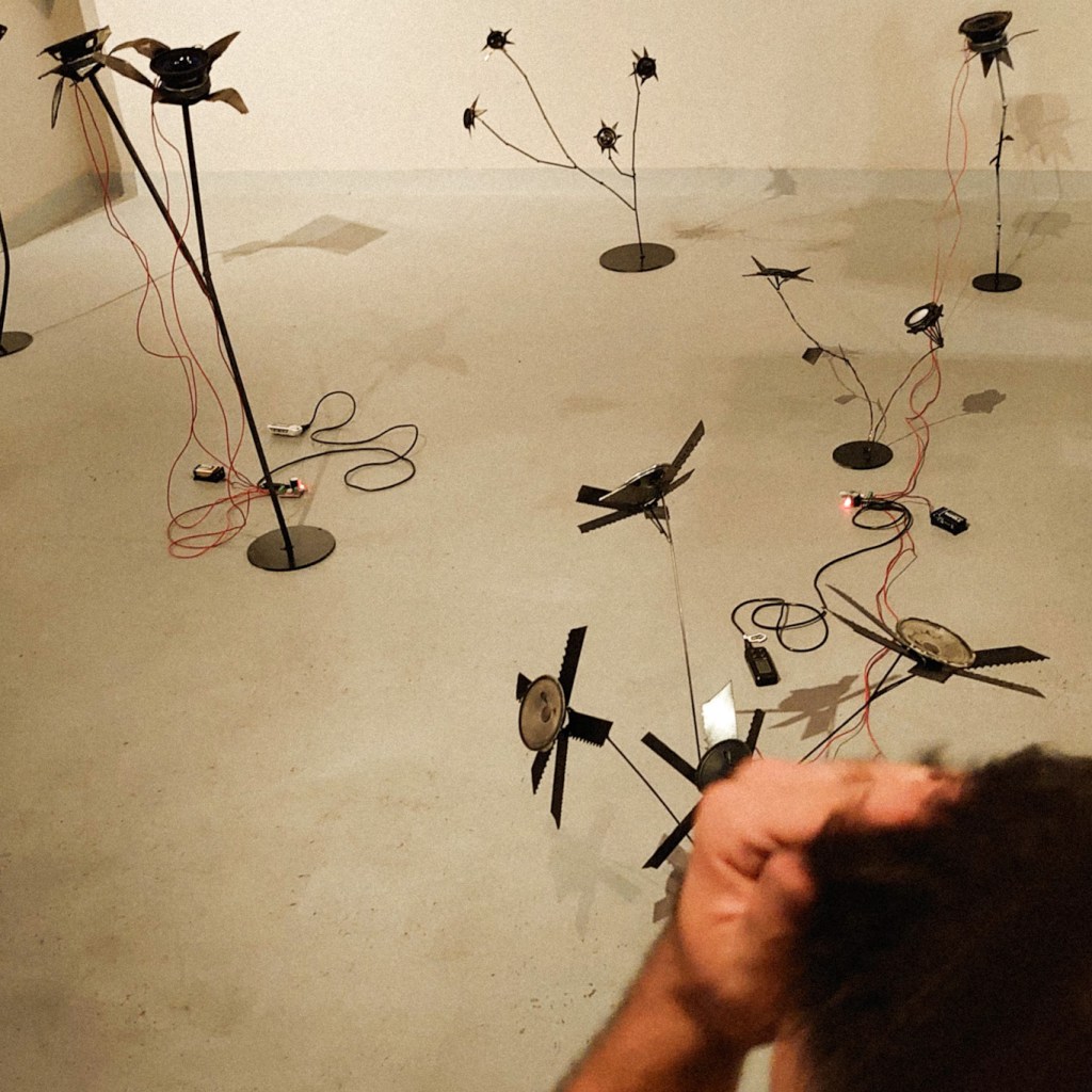 Sound artist Luc Messinezis & sculptor Yiannis Brouzos (Oannes) responded to an invitation by curator Nansy Charitonidou, to design and present and original artwork as part of the first Primarolia Festival’s contemporary art exhibition Into my Garden Come. The two artists combined ideas and talents producing the sound sculpture installation Flowers from the Uncanny Valley. The artwork brings the valley into the realm of the real, creating a physical metaphor of a place where fake and real can no longer be distinguished and the ambler enters a chilling dream of the precession of the simulacra.